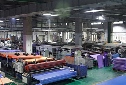 12條全自動化的中空板生產(chǎn)線,80余臺深加工機械,占地15000㎡實體廠房