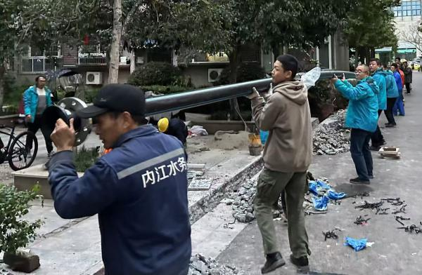 該小區(qū)管網(wǎng)設(shè)施陳舊老化,經(jīng)常出現(xiàn)水管爆裂,已經(jīng)影響居民正常生活。為切實解決問題,管網(wǎng)運行部積極貫徹“變被動搶修為主動維護”的服務(wù)宗旨,與管網(wǎng)規(guī)劃部聯(lián)合,多次組織人員到現(xiàn)場了解用戶用水情況,查看供水管線走向和供水設(shè)施安裝位置,“量身定制”出科學(xué)可行的供水管網(wǎng)改造方案,讓改造工作實施過程中盡量降低對小區(qū)2000戶居民的生活、出行和用水影響。