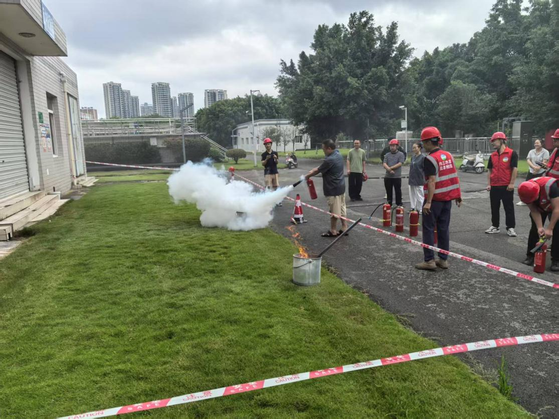 演練現場,市污水處理公司副經理李昊謙向參演人員詳細講解了火災風險及滅火器的使用要點。隨后,模擬火情發生,員工們迅速響應,嚴格按照規范操作滅火器,成功撲滅“火勢”。整個過程緊湊有序,有效檢驗了應急預案的可行性,進一步強化了員工的火災防范意識和應急處置技能。