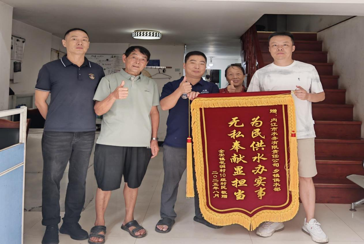 8月25日,花洞村五組村民代表將一面印有“為民供水辦實事 無私奉獻顯擔當”的錦旗贈予鄉(xiāng)鎮(zhèn)供水部,以此表達對部門高效、貼心服務(wù)的由衷感激。